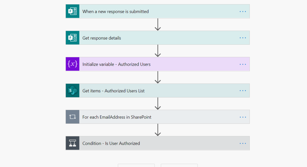 If the user who is filling out the form does not belong to the ‘Authenticated’ list, we Send an Email letting the user know they are unauthorized to fill out this form.