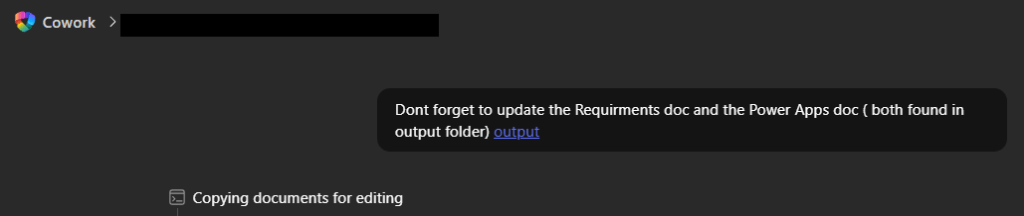This works best when the requirements.md file is updated throughout the session, not only at the end. When decisions change, files are created, or blockers appear, tell Cowork to update the file.