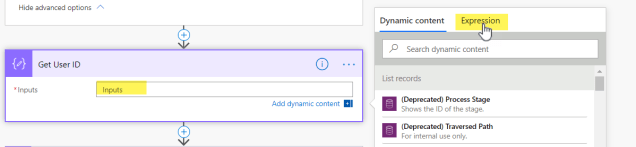 Next, add a Compose action – to store the User ID (Unique ID) We use the same technique as mentioned above, using first() and the field name Add this to the end of your expression