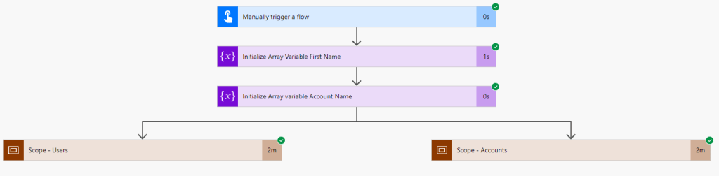 First add a ‘Initialize variable‘, define the type as Boolean, and call this variable Exception. Next add two(2) ‘Scopes’