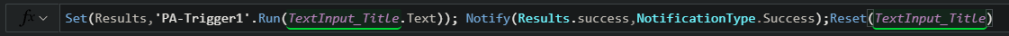 To add this, I put my Flow run inside a Variable inside Power Apps. Ill call my variable Results, and IO add this to the OnSelect property of the Button where my Flow is: