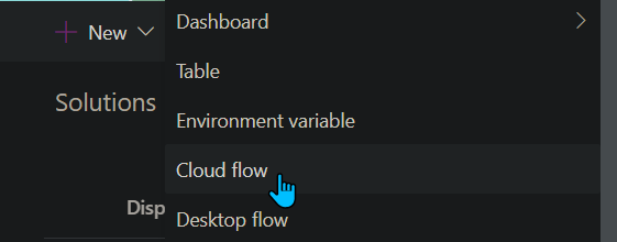 We will be using the Common Data Service Current Environment connector. This means that our Flow, MUST be created inside a Solution.