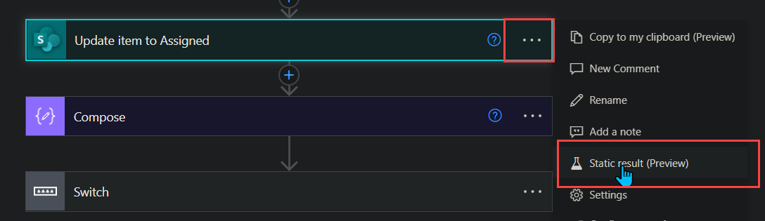 Things to note: – Static Result are in ‘Preview’ so it could change at any time – Not all actions will be able to use them – If the option is greyed out, and you’re certain the action is able to use it, save the Flow and re open